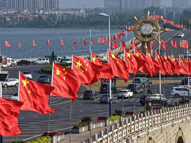 喜迎“双节”,我市城区的街头已悄然披上“中国红”盛装。在黄河五路、中海太阳岛、中海天地桥等13处核心节点,一面面鲜艳的国旗迎风飘扬,绘就一幅气势恢宏的节日盛景。