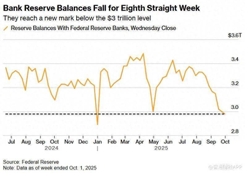 尽管如此,美联储主席鲍威尔上月仍表示银行体系准备金“依然充裕”,并预计缩表将在准备金降至“充裕水平”时结束。但近期资金市场的迹象显示,美联储可能已逐渐逼近这一临界点。