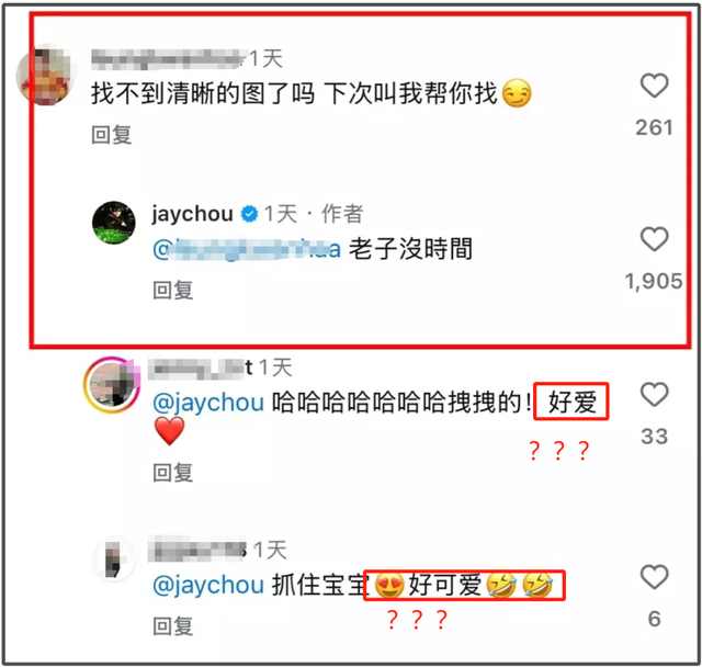 眼看周杰伦找了这么糊的照片影响整体观感,有粉丝在评论区留言是不是找不到高清的图了,下次叫粉丝帮他找。没想到这个正常的评论,居然惹毛了周杰伦,他直接回应:“老子没时间。”